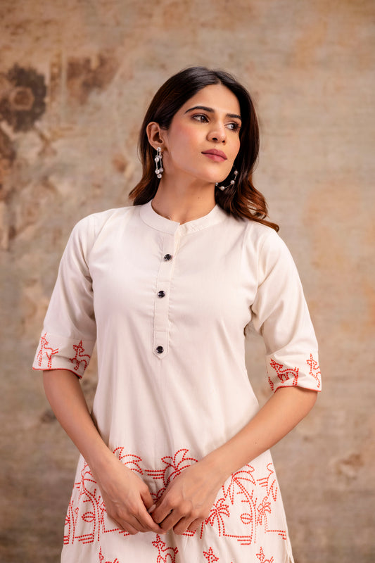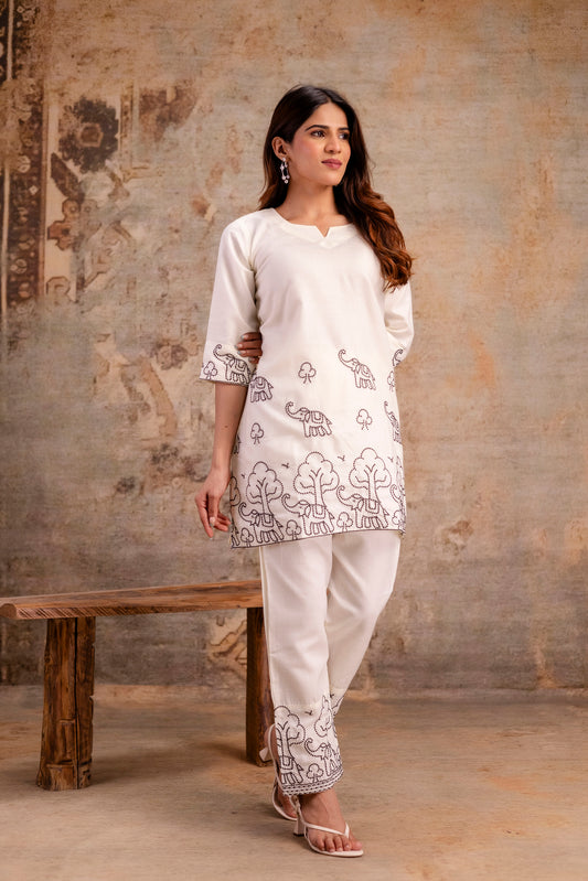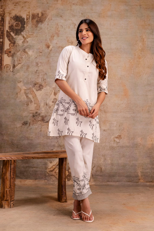 Sky Blue Cotton Printed Office Wear Kurti Set