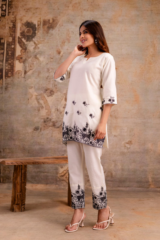 Sky Blue Chanderi Silk Kurta Pant Set For Women